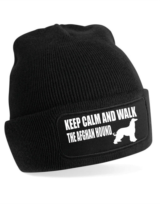 Keep Calm & Walk Afghan Hound Beanie Hat Dog Lovers Gift For Men & Ladies