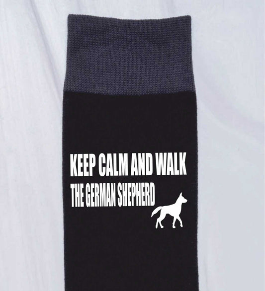 Keep Calm & Walk German Shepherd Men's Black Novelty Socks Dog Lover Gift