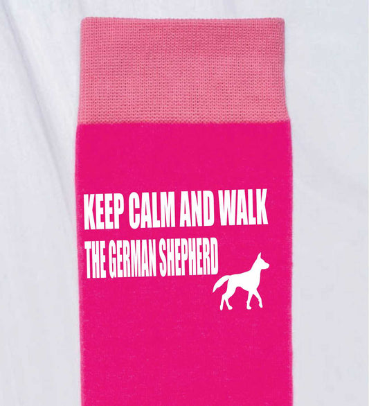 Keep Calm & Walk German Shepherd Ladies Pink Novelty Socks Dog Lover Gift