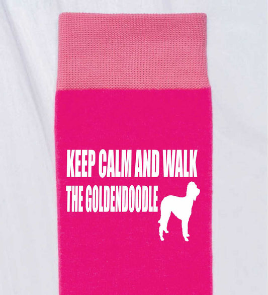 Keep Calm & Walk Goldendoodle Ladies Pink Novelty Socks Dog Lover Gift
