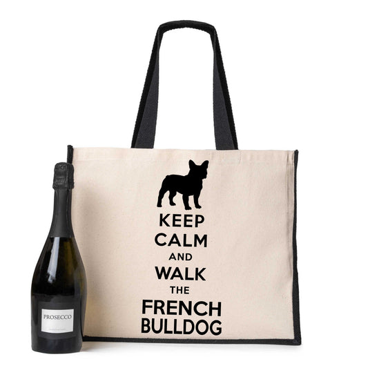 Keep Calm & Walk French Bulldog Tote Bag Dog Lovers Ladies Canvas Shopper