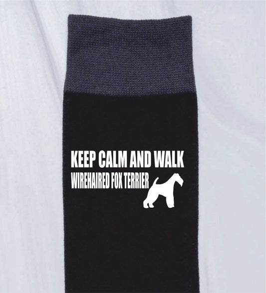 Keep Calm & Walk Wirefox Terrier Men's Novelty Socks Black Dog Lovers Gift