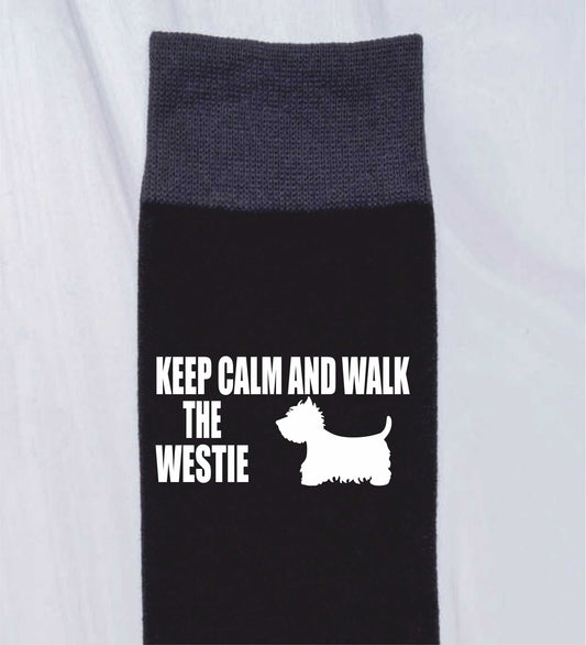 Keep Calm & Walk The Westie Men's Novelty Socks Black Dog Lovers Gift