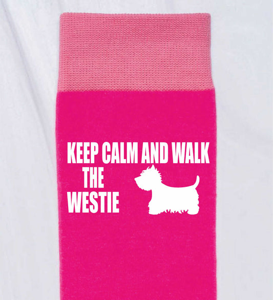 Keep Calm & Walk The Westie Ladies Novelty Socks Pink Dog Lovers Gift