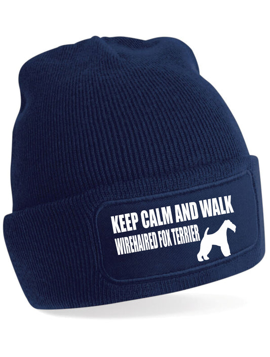 Keep Calm & Walk Wire Fox Terrier Beanie Hat Dog Lovers Gift For Men & Ladies