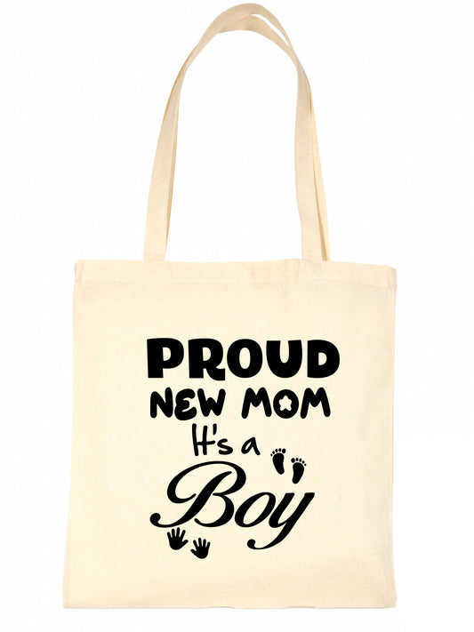 Proud New Mom It's A Boy Tote Bag New Baby Ladies Canvas Shopper