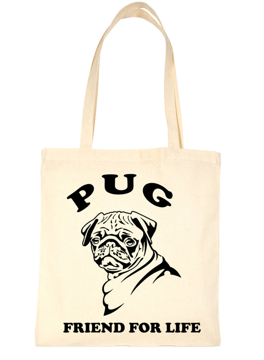 Pug Tote Bag Dog Lovers Gift Ladies Canvas Shopper