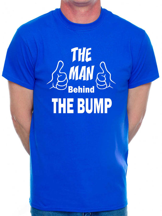 The Man Behind The Bump T-Shirt Funny Slogan New Dad Birthday Men Man's Tee