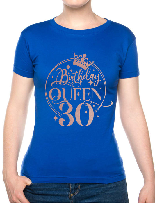 Birthday Queen 30 Ladies Fit T-Shirt 30th Birthday Gift Womens Tee In Rose Gold