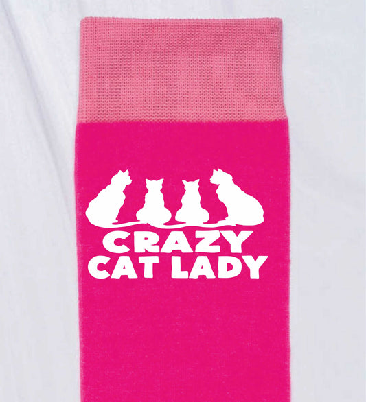 Crazy Cat Lady Funny Ladies Pink Novelty Socks Birthday Cat lovers Gift