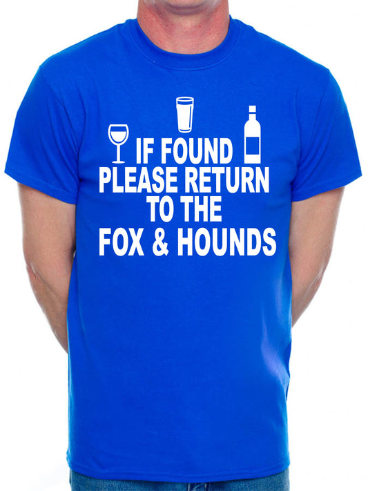 Custom Mens T-Shirt If Found Return To Fox & Hounds Pub Choose Your Pub Name