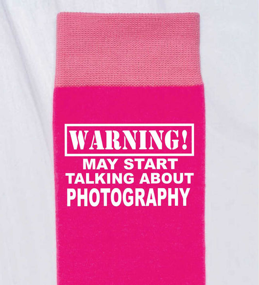 Warning May Talk About Photography Ladies Pink Novelty Socks Birthday Gift