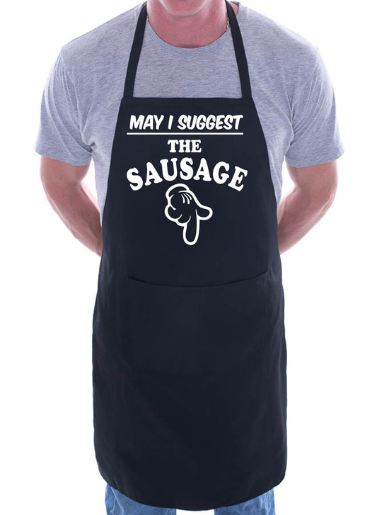 BBQ Apron May I Suggest Sausage Funny Slogan Gift Novelty Cooking Fathers Day