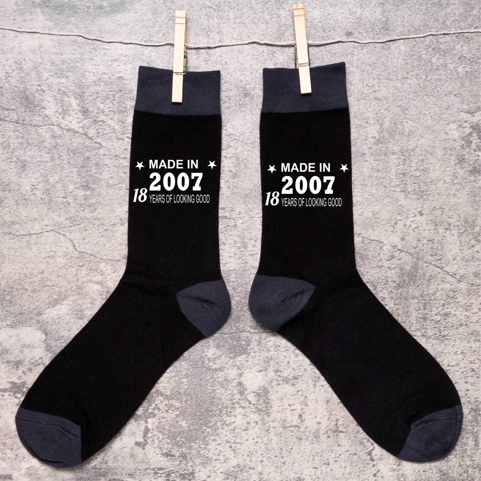 18th Birthday Born in 2007 Mens Novelty Socks Black 18 Year Old Gift