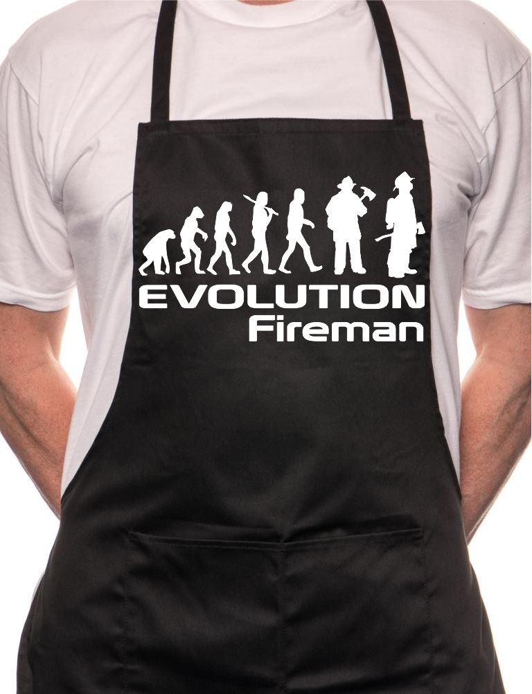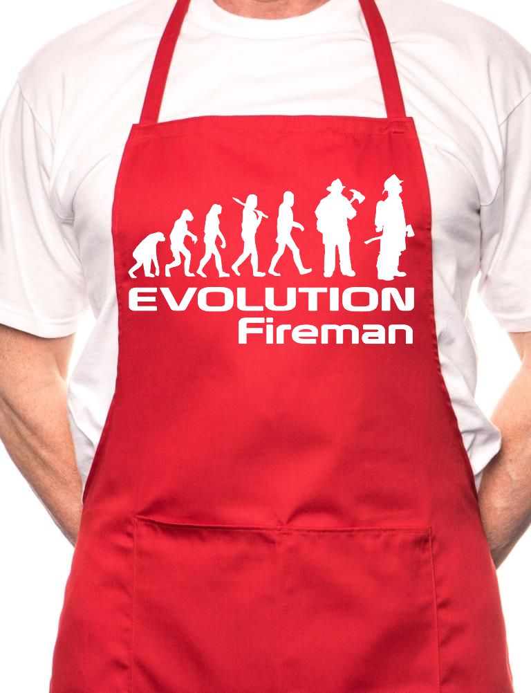 Adult Evolution Of Fireman Firefighter BBQ Cooking Funny Novelty Apron