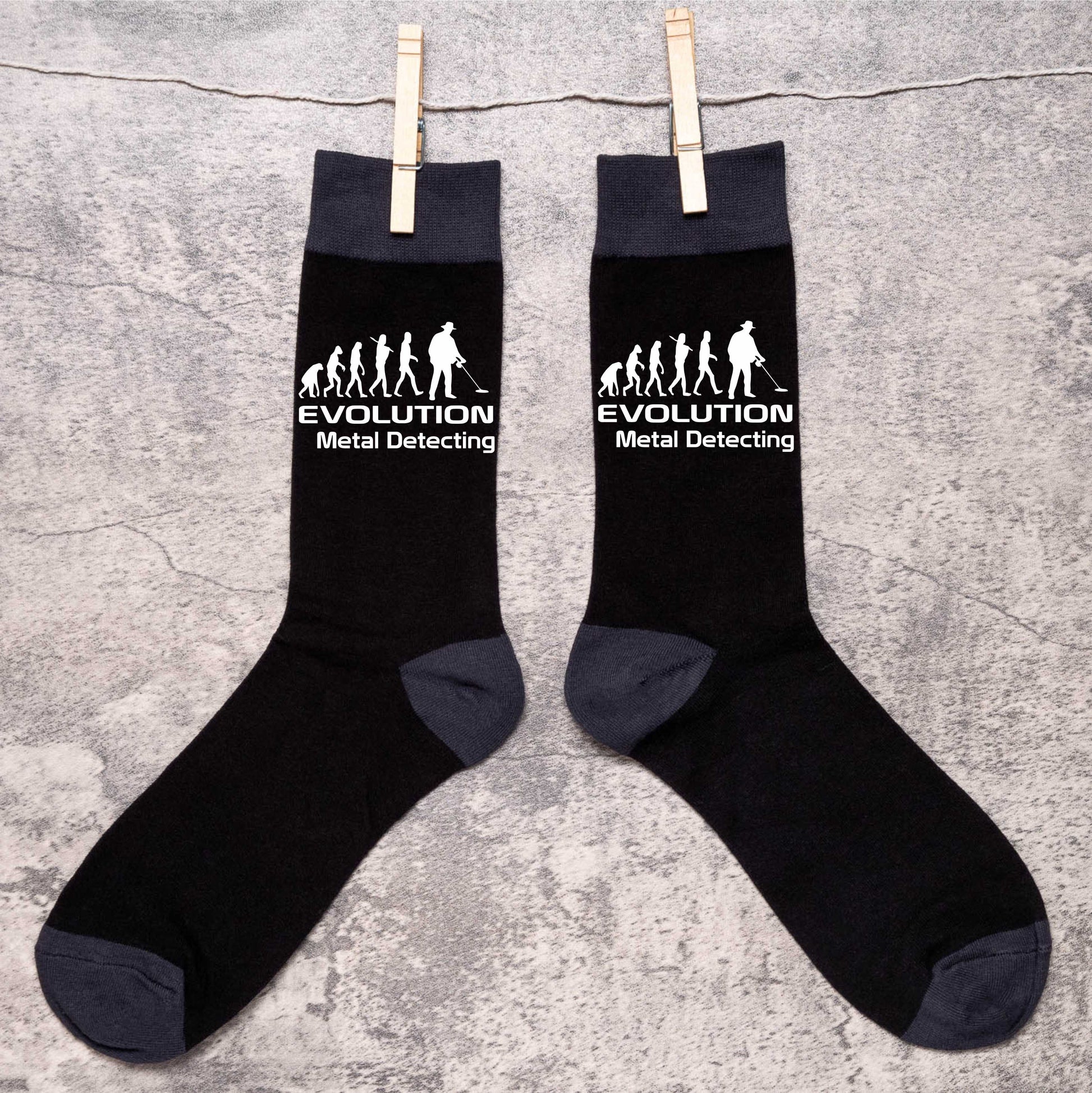 Evolution Of Metal Detecting Funny Men's Black Novelty Socks Birthday Gift