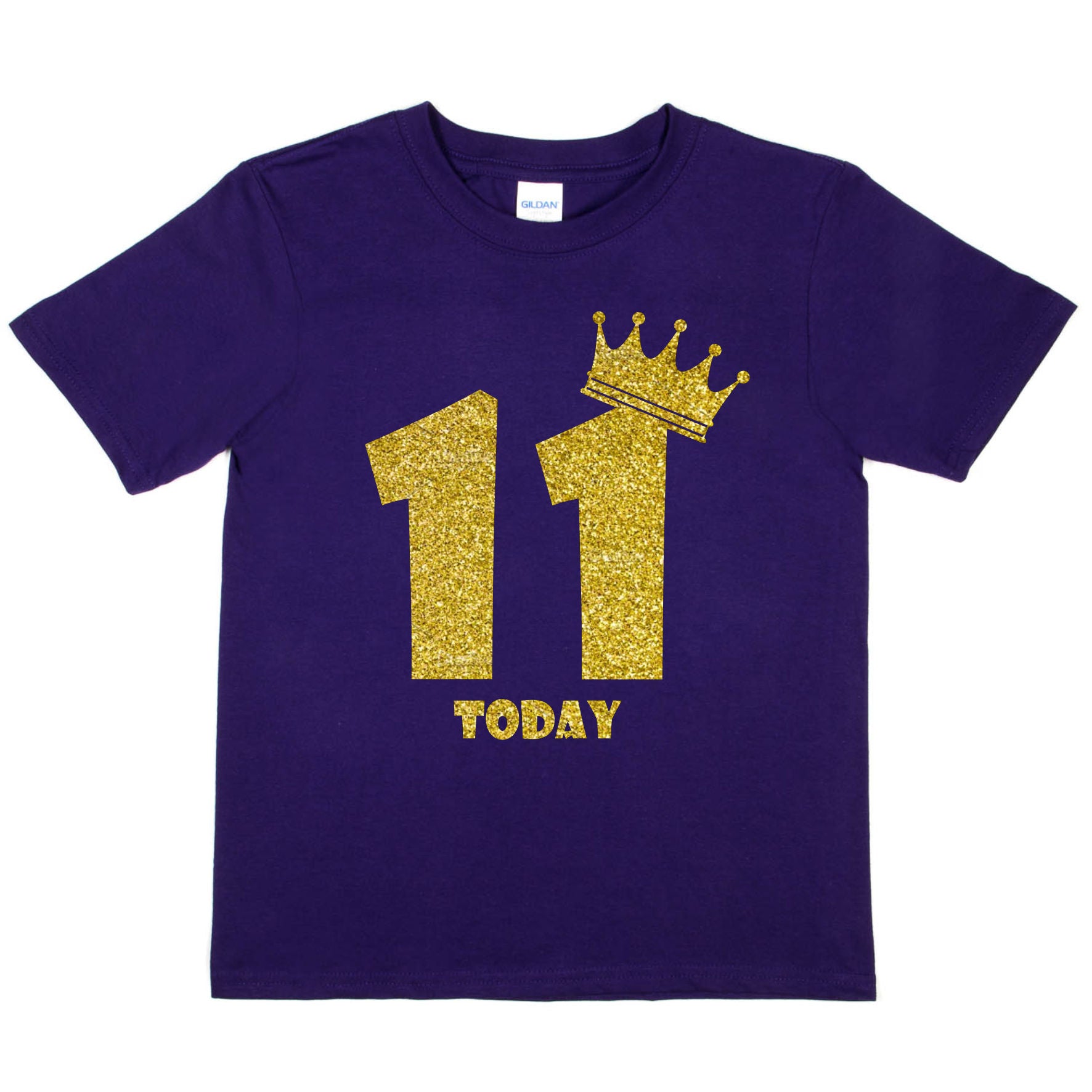 Kids Eleven Today Birthday T-shirt In Gold Glitter Happy 11th