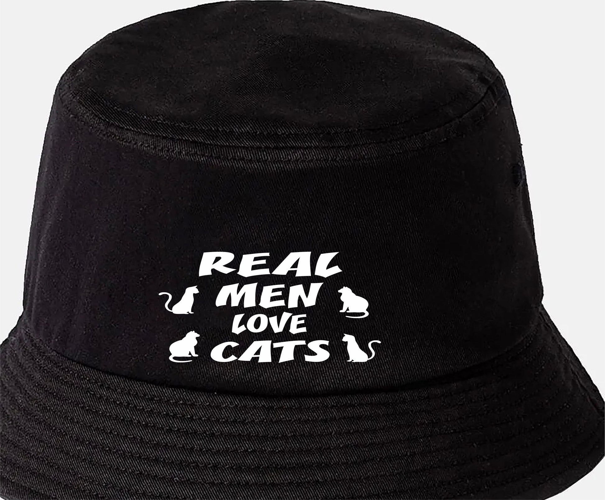 Real Men Love Cats Bucket Hat Funny Cat Lovers Gift for Men