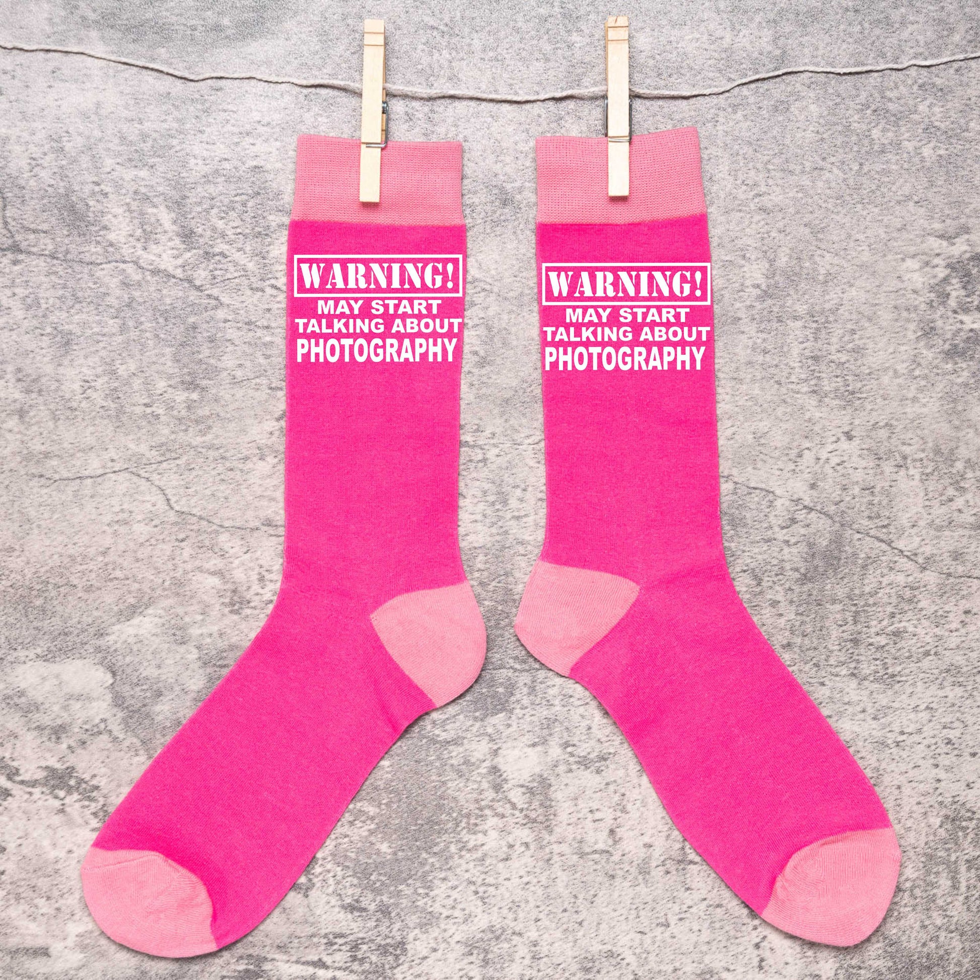 Warning May Talk About Photography Ladies Pink Novelty Socks Birthday Gift